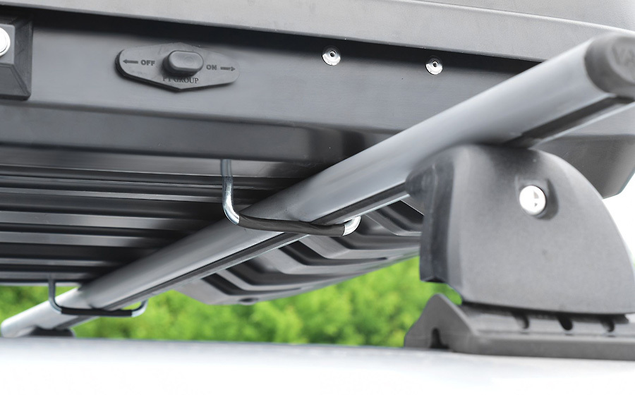 В комплекте с автобоксом поставляется набор ремней для стяжки груза. Бокс укомплектован замком с двумя ключами.