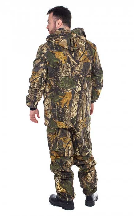 Состоит из куртки и брюк. Куртка с капюшоном и противомоскитной сеткой, убираемой в потайной нагрудный карман.