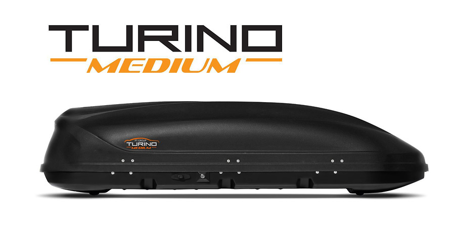 Аэродинамический бокс на крышу автомобиля Белый Turino Medium с односторонним открыванием является собственной разработкой компании PT Group.