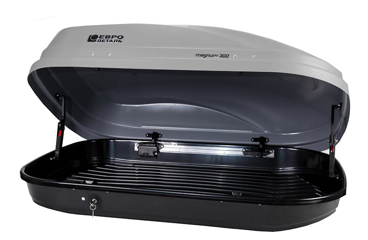 Автомобильный бокс Магнум 300 (серый карбон) 125х78х42см. В силу своих компактных размеров автобокс удобен для установки на автомобили с небольшой крышей (небольшие седаны, хэтчбэки).