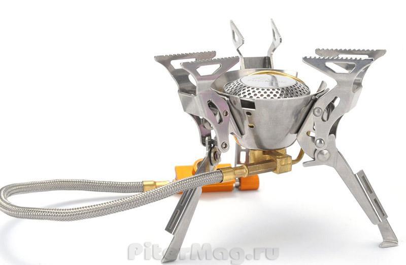 - Эта портативная складная горелка в сложенном виде поместится даже в самый маленький котелок. Поставляется в компактном индивидуальном контейнере для переноса и хранения.