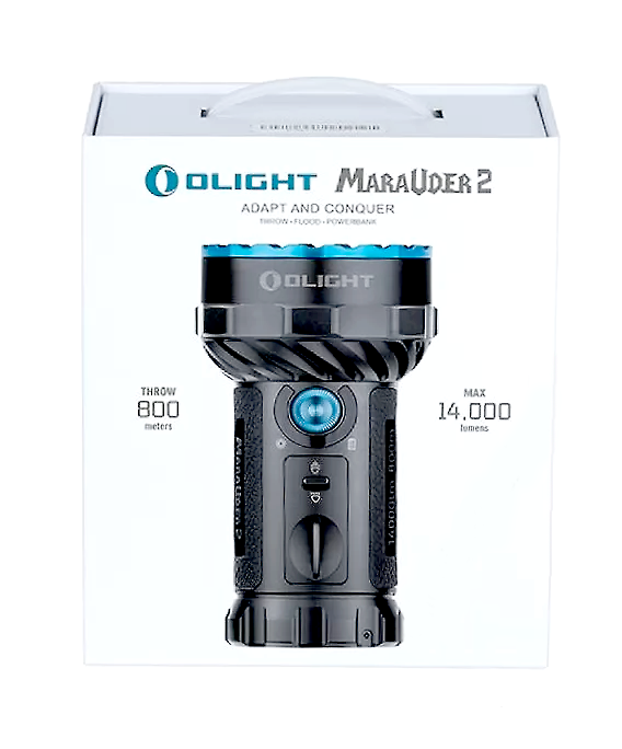 Мощный поисковый фонарь Olight Marauder 2 от компании Olight (Олайт) комбинирующий ближний и дальний свет за счет TIR оптики.