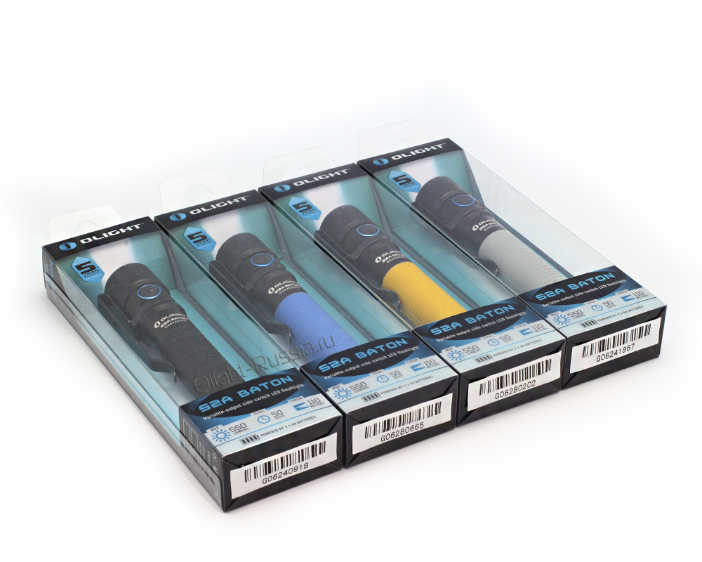 Светодиодный фонарь Olight S2A Baton мощностью 550 люмен, работает от широко доступных двух пальчиковых батарей типа АА. Акриловая TIR оптика обеспечивает равномерный и приятный хотспот, а четыре варианта расцветки корпуса из мягкого силиконового материала черного, серого, синего и желтого цвета позволит выбрать понравившийся вам цвет.