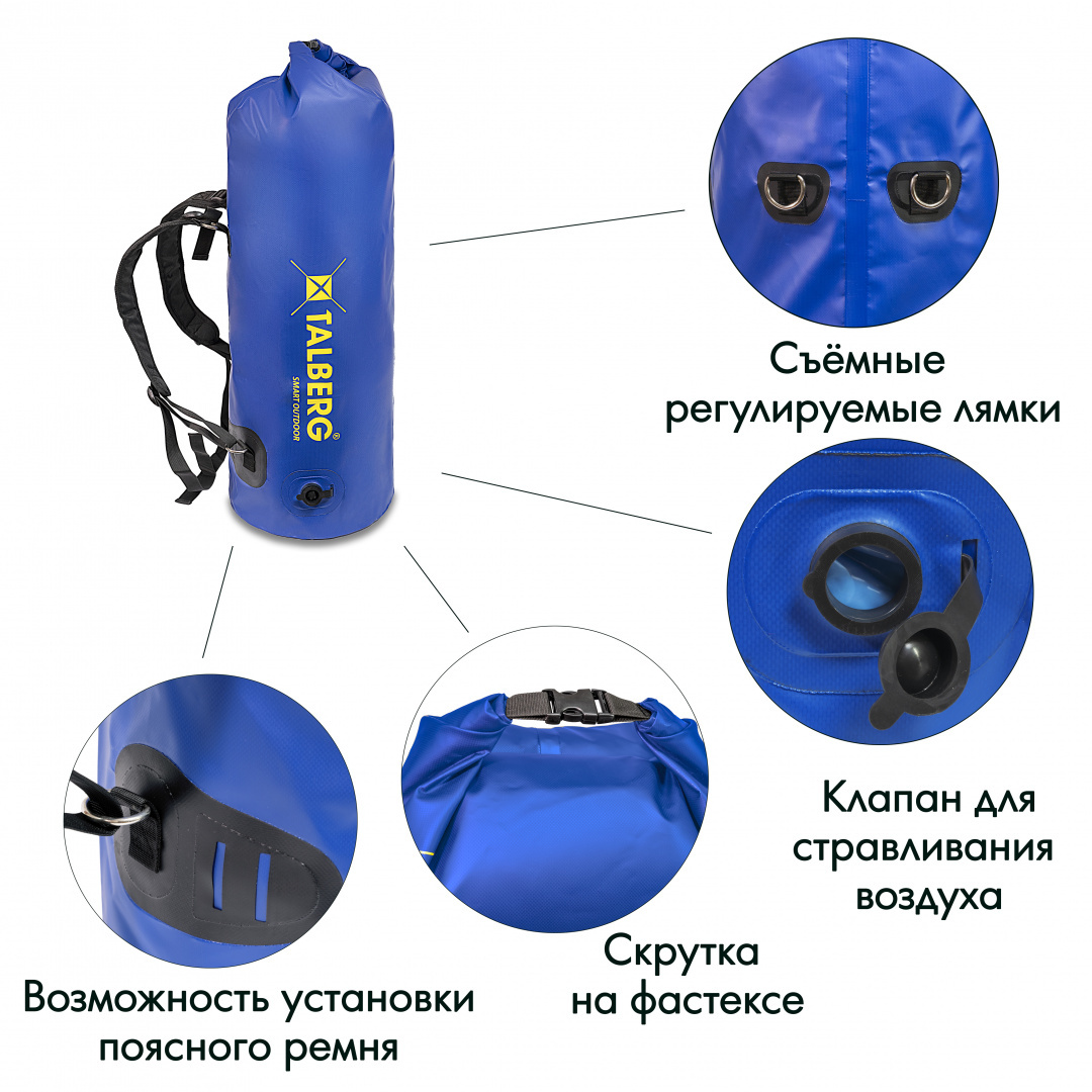 Сверхпрочный герметичный мешок, с двухсторонним PVC-покрытием, на эластичной и морозоустойчивой текстильной основе, рассчитанный на высокие нагрузки, который сохранит ваши ценные вещи, одежду и прочее снаряжение от воды, пыли и грязи.