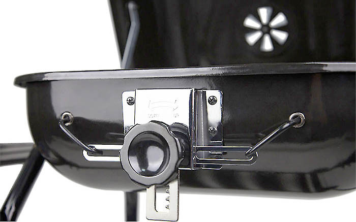 На фронтальной части гриля предусмотрен регулятор, вращая который вы можете либо поднять грилевую решетку повыше (если жар слишком силен), либо опустить решетку ближе к углям - по мере их остывания.