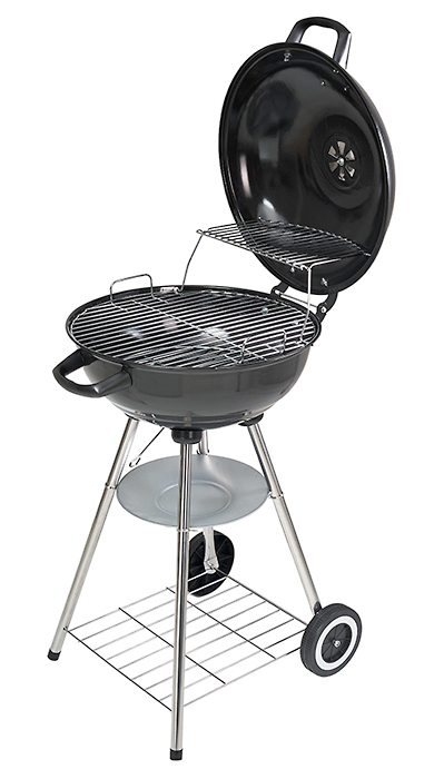 Угольный гриль имеет классическую круглую форму, что максимально удобно и эффективно в приготовлении пищи - мясо, рыбу или овощи можно не просто жарить, но и тушить без опасности возникновения открытого огня.