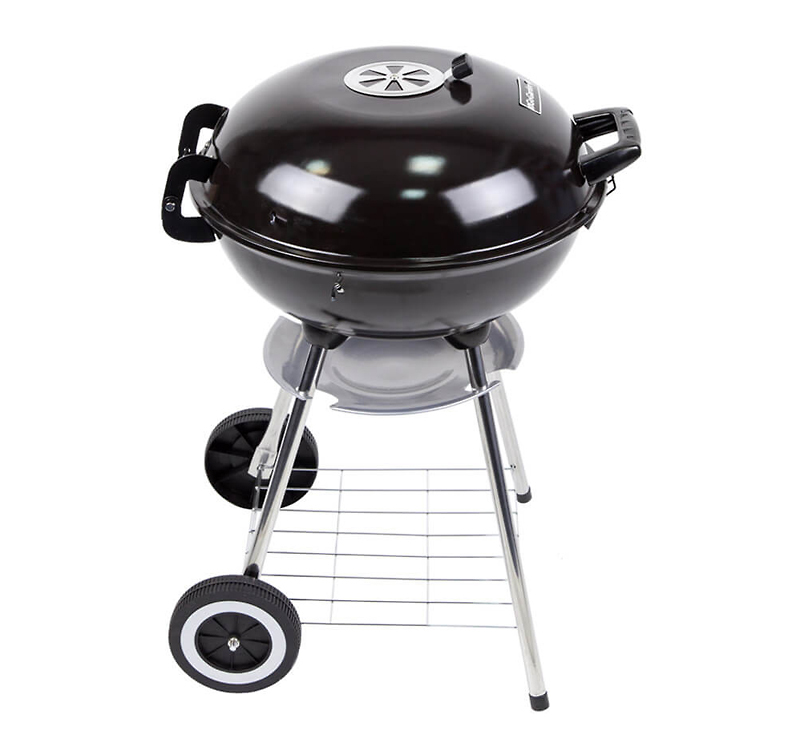 Угольный гриль классической круглой формы максимально удобен и эффективен в приготовлении пищи. Мясо, рыбу или овощи можно не просто жарить, но и тушить без опасности возникновения открытого огня, просто закрыв крышку гриля-барбекю.