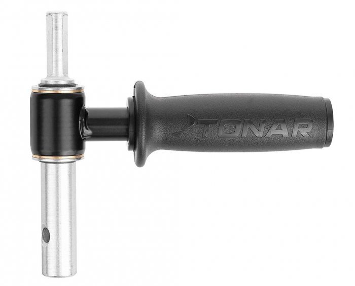 Хвостовик адаптера имеет усиленную трехгранную рабочую поверхность (диаметр хвостовика 12 мм) и ограничительный бурт для защиты от выпадения при ослаблении затяжки патрона. Хвостовик адаптера закрепляется в патрон шуруповёрта. Посадочный диаметр патрона шуруповерта - 1/2 дюйма (13 мм). Эксплуатировать адаптер допустимо с шуруповертом с напряжением 18В и максимальным крутящим моментом не более 120 Нм. На шуруповерте следует установить режим "Сверление" и переключить скорость вращения на "1", что обеспечит максимальный крутящий момент шуруповерта и эффективное бурение льда.