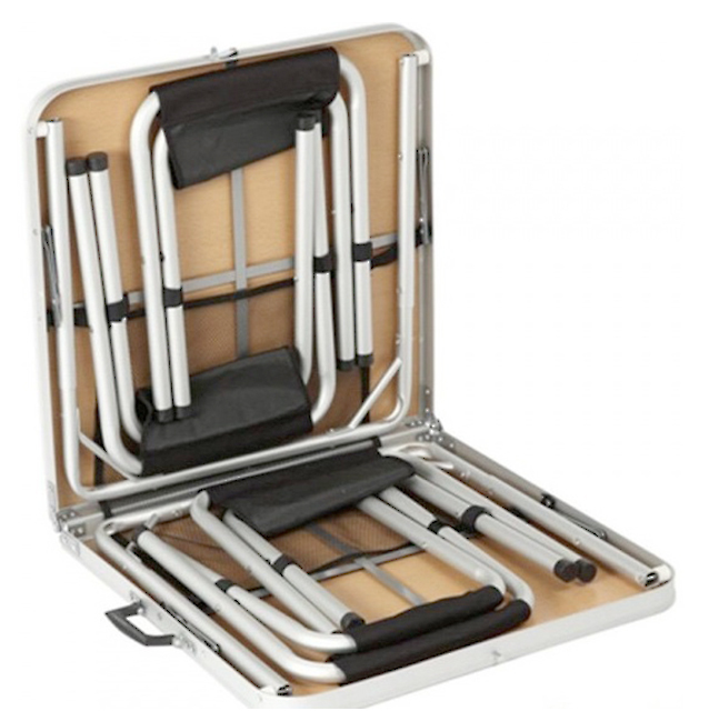 Весь комплект складывается внутрь стола, образуя удобный переносной чемоданчик.