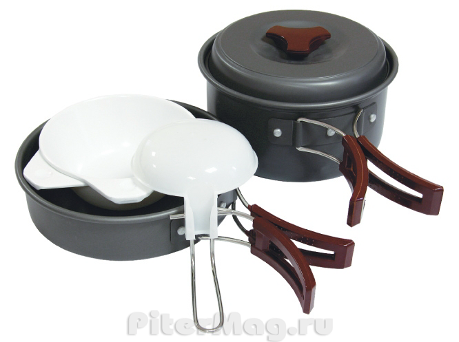 Набор посуды Btrace С0118 можно использовать только на горелке. Все предметы очень легкие и компактно складываются друг в друга. Губка для мытья в комплекте позволит Вам без труда содержать всю посуду в чистоте. Набор упакован в мешочек из синтетической ткани.
