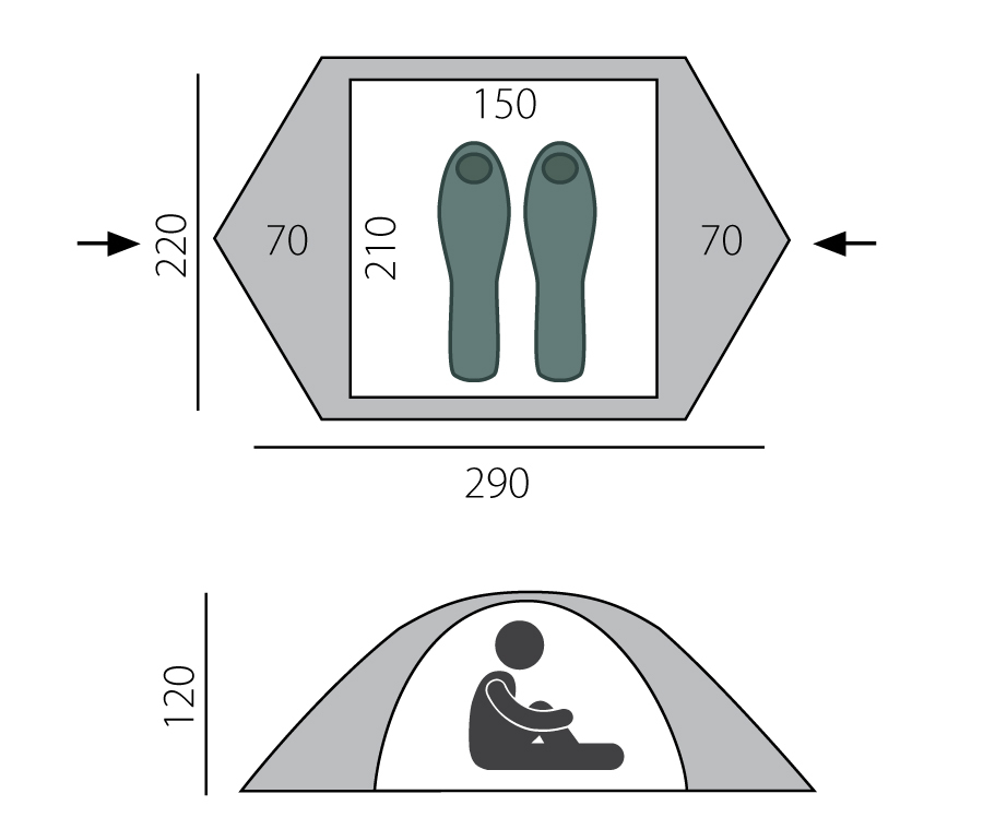 - - Больше полезного пространства в палатке за счет более вертикальных стенок