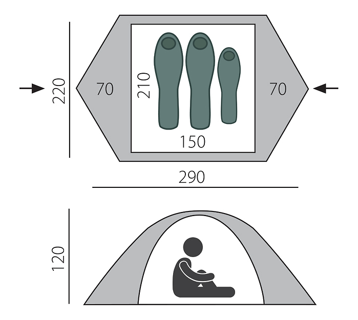 Материал тента: 100% полиэстер 75D/190T PU W/R