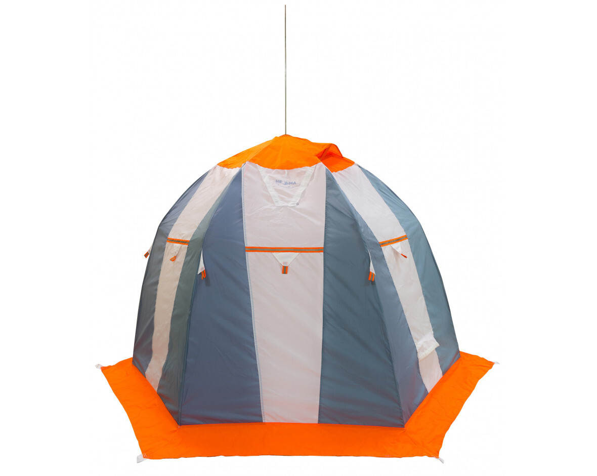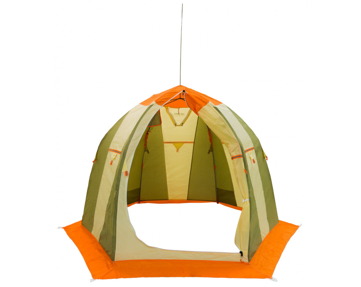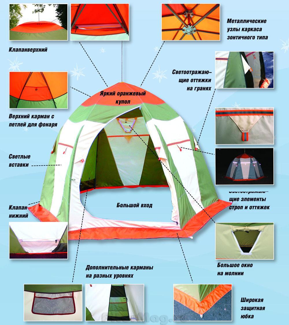 - Яркий оранжевый купол и светоотражающие нашивки, делающие палатку заметной в темное время;
