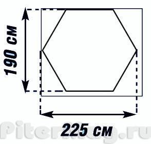 Размер (см): 185 х 210 х 150 Каркас: Быстросборный каркас зонтичного типа из дюралевого прутка диаметром 8 мм. Узловые соединения: Металл Кол-во спиц: 6 Ткань: Oxford 300D 2000PU с водоотталкивающей пропиткой (2000 мм. водного столба) Вес (кг): 4