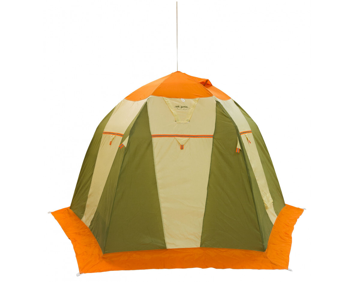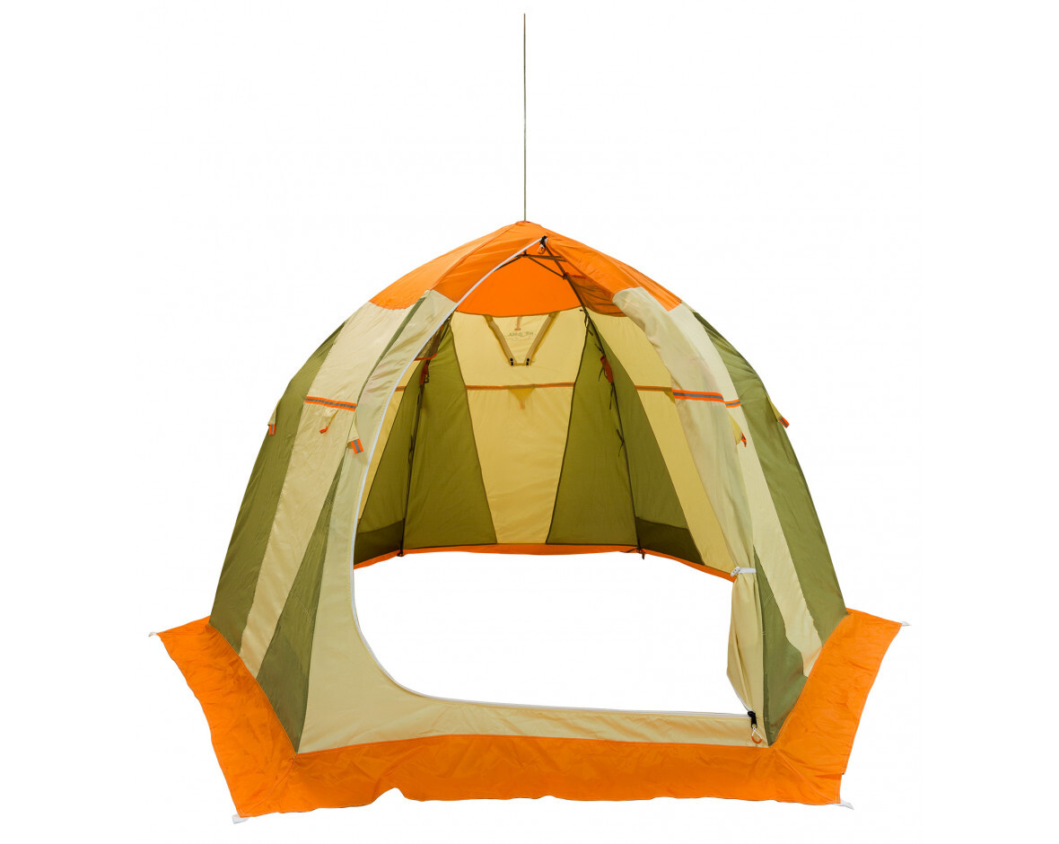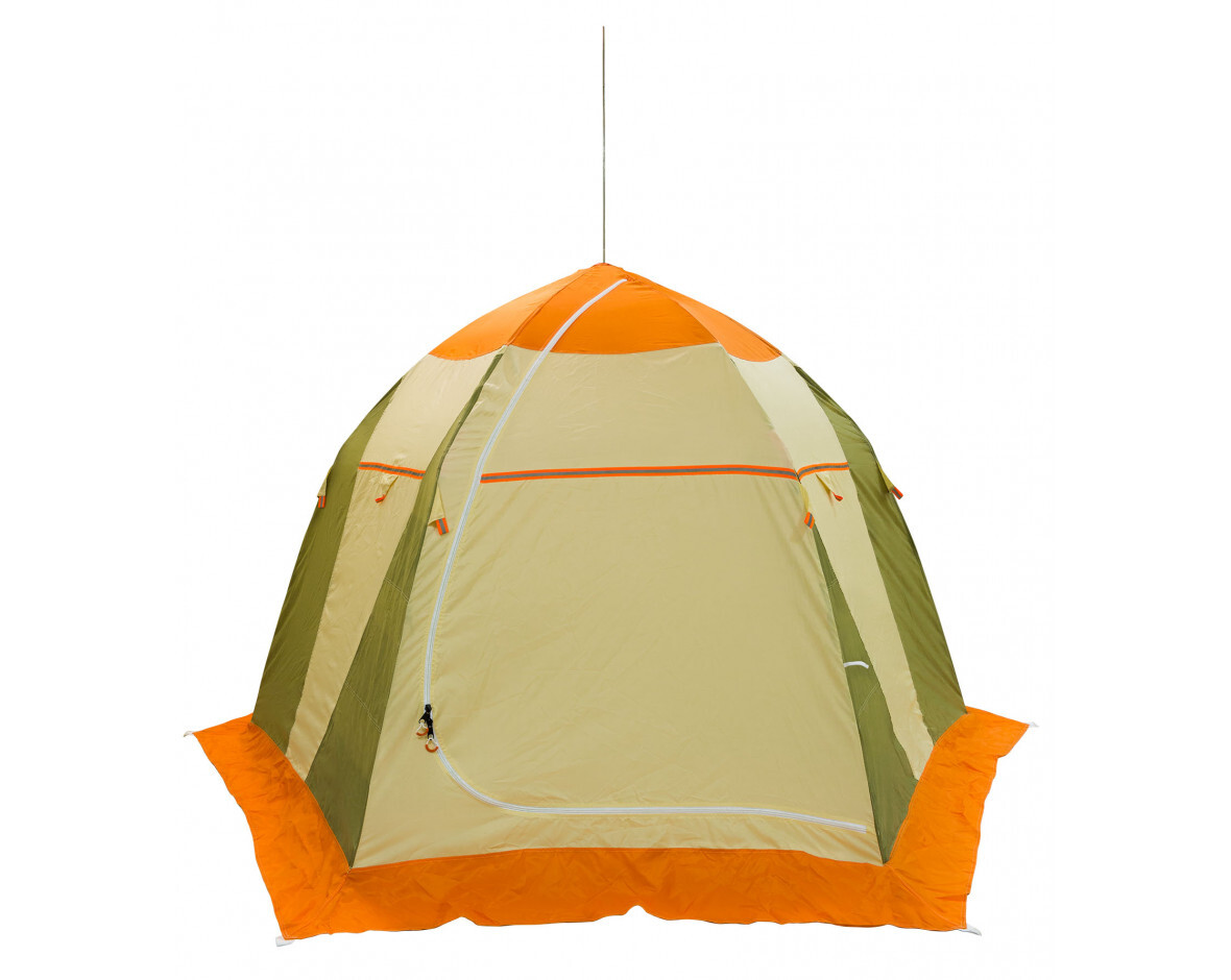 Если вы хотите комфортно рыбачить в мороз и непогоду, советуем купить для зимней рыбалки Митек Нельма 3 . Наша красавица с оранжевым куполом, устойчивым каркасом и продуманными деталями подходит для зимней рыбалки лучше других палаток линейки Нельма.