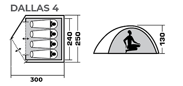 Четырёхместная палатка с небольшим тамбуром Jungle Camp Dallas 4 отлично подойдет для выездов на природу, рыбалки с ночевкой, походов выходного дня.