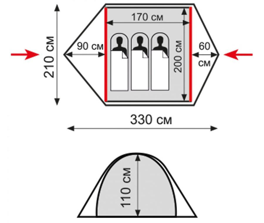 Двавхода – удобно входить/выходить из палатки. Хорошая проточная вентиляция, не так душно летом.