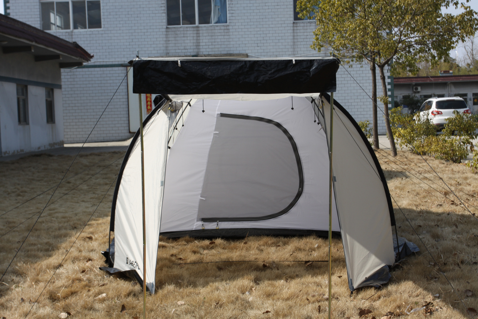 • Солнцезащитный козырек на входе в палатку на стальных стойках.