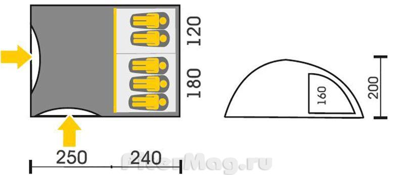 • Внутренняя палатка имеет два соседних входа и разделена изнутри съемной перегородкой.