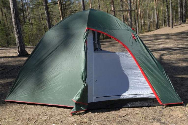 Большая четырехместная кемпинговая палатка с полуавтоматическим каркасом и одним тамбуром