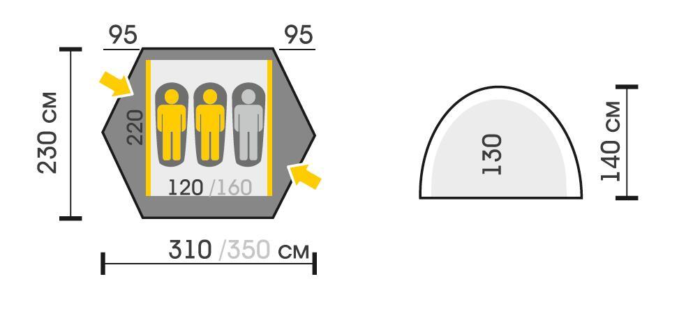 • Внутренняя палатка из «дышащего» Polyester обеспечивает отличную вентиляцию и испарение конденсата.