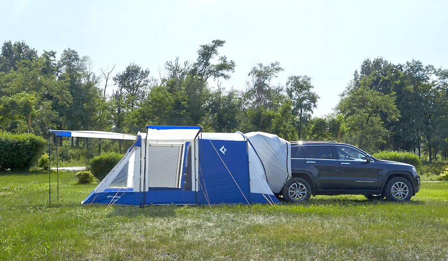 Вместительная кемпинговая палатка оригинальной конструкции для автомобилистов.