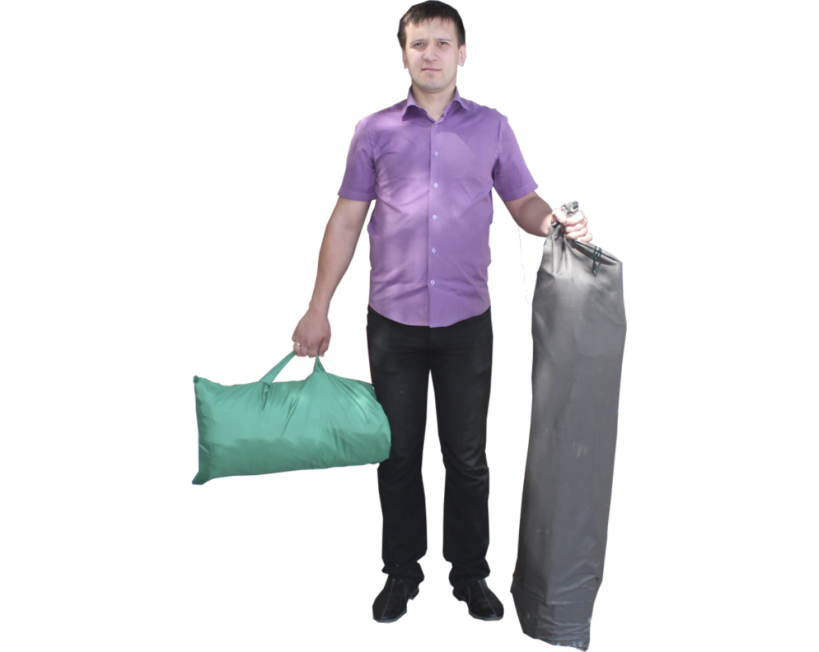 Каркас изготовлен из стальной трубы Ø 25 мм и покрыт порошковой краской. Фиксация узлов нижнего основания каркаса осуществляется по системе без болтового крепления - на фиксаторах, что обеспечивает быструю сборку каркаса и предотвращает самопроизвольное разъединение узлов. Открытые элементы козырька опресcованы (убраны острые углы) и защищают тент от порезов. Детали каркаса упакованы в транспортировочный чехол из полиэфирной ткани "Оксфорд"