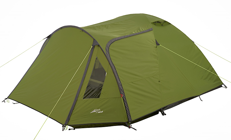 Внутренняя палатка из "дышащего" полиэстера хорошо проветривается благодаря москитной сетке в полный размер двери и двум большим треугольным вентиляционным окнам сверху палатки.