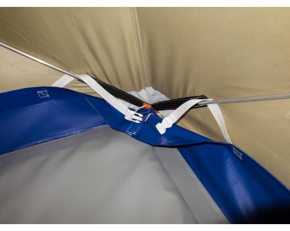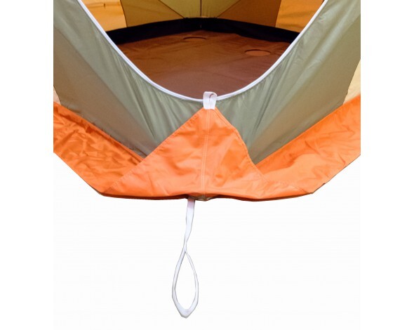 Оттяжки пола усиленные и позволяют буксировать (как на санках) собранную палатку с внутренним содержимым.