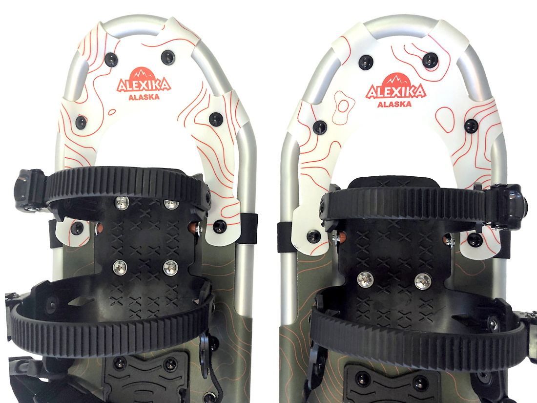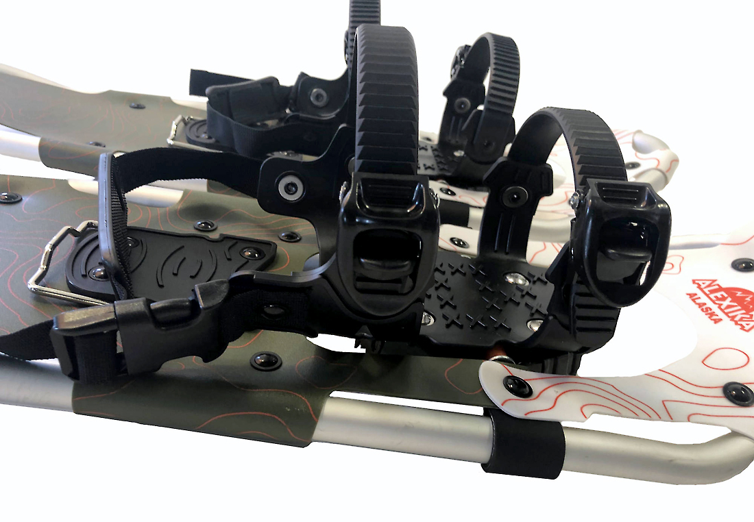 Double Ratchet Buckle System: снегоступы Alaska имеют систему фиксации обуви с двойным храповым механизмом. Позволяют настроить степень обхвата разного объёма обуви, в тоже время рычагом ослабить фиксацию при необходимости