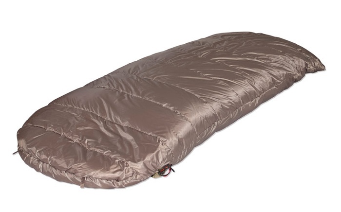 Всем хороша эта ткань, но вот паропроницаемость у нее не очень высокая. Поэтому центральная часть спальника (светлая ткань) сделана из паропроницаемого материала, что позволяет спальнику "дышать", выпускать пар и не конденсировать влагу внутри. Под внешней тканью расположен синтетический утеплитель APF Isoterm 3D. Он представляет собой вспушенное пустотелое силиконизированное волокно, полая структура которого позволяет удерживать большой объем воздуха, благодаря чему ваш спальный мешок сможет эффективно сохранять тепло. Поверхность волокна обработана силиконом, что способствует уменьшению трения между волокнами и быстрому высыханию, а также препятствует впитыванию влаги. Утеплитель сформирован в пакеты, смещенные относительно друг друга на половину ширины пакета. Это предотвращает теплопотери из-за проникновения холодного воздуха через швы. Ткань и утеплитель отлично удержат тепло, но также необходимо затянуть затяжки капюшона и верхней части спальника, чтобы теплый воздух не уходил со стороны плеч и груди.