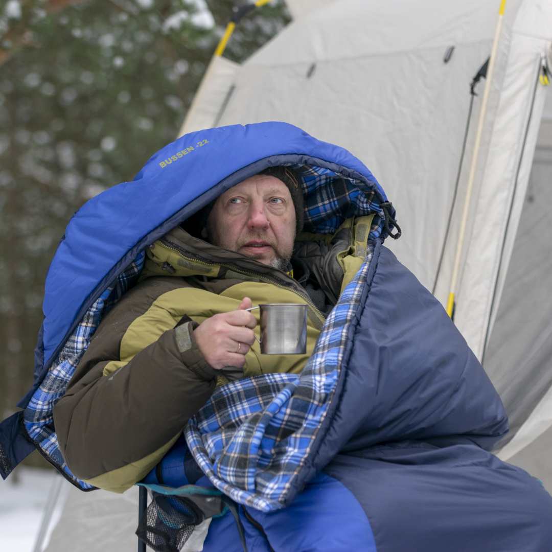 Просторный спальный мешок-одеяло Talberg Bussen -22°С, модель, предназначенная для кемпинга, походов и отдыха на природе, включая зимний период.