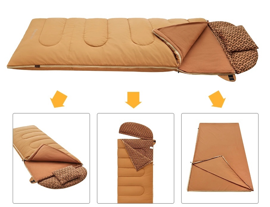 Спальник полностью раскрывается, трансформируясь в одеяло.