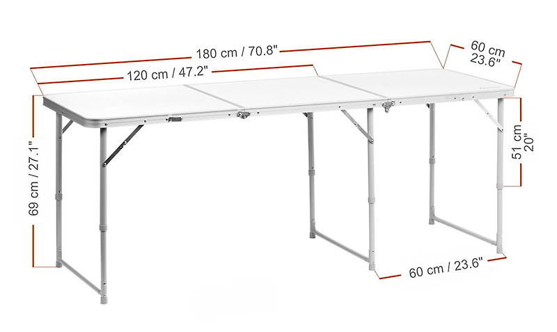 Туристический складной стол, состоящий из 3 секций и отличающийся внушительными размерами: 180х60х70 см.