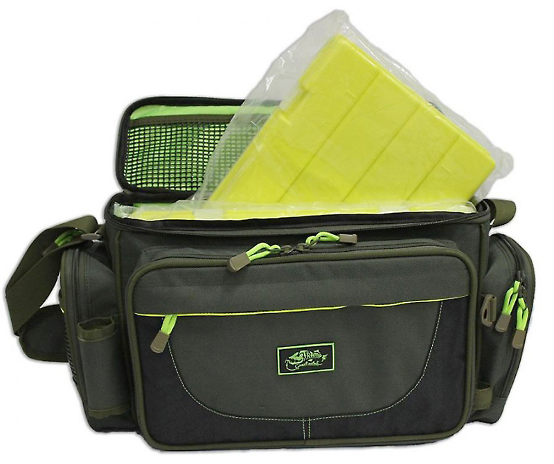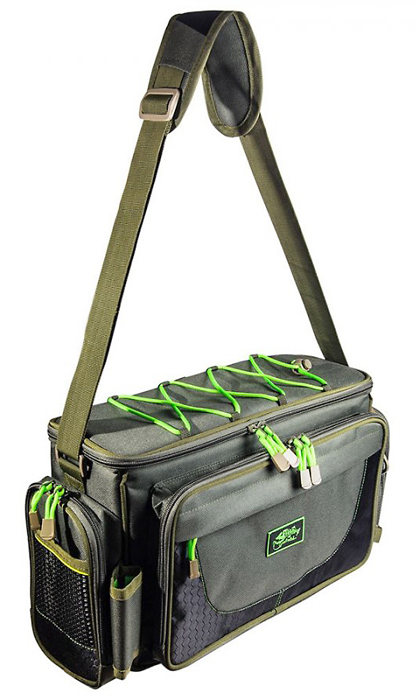 Удобная сумка для рыбака. Имеет внутри 2 контейнера из пластика.