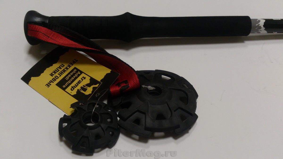 Каждая пара палок укомплектована парой больших и маленьких колец из плотной морозоустойчивой резины и резиновыми колпачками на наконечники, что позволяет использовать палки на различных рельефах почвы круглый год. Наконечники палок TRAMP сделаны из износоустойчивой, высоко углеродистой стали.