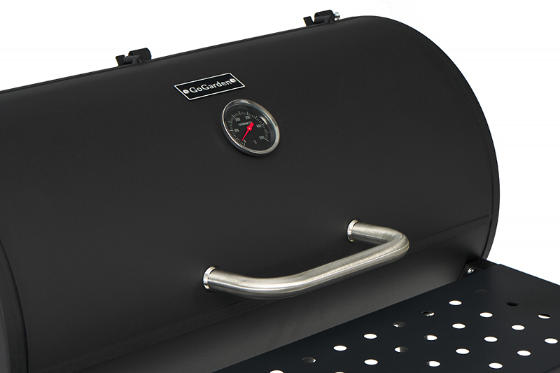 - Труба с регулировочной крышкой, для обеспечения устойчивой конвекции и точной настройки уровня жара в процессе гриллинга;